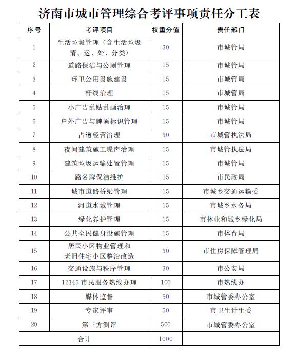 附件:济南市城市管理综合考评事项责任分工表附件