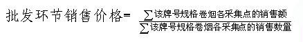 第十一条 卷烟批发环节销售价格,按照税务机关采集的所有卷烟批发企业在价格采集期内销售的该牌号、规格卷烟的数量、销售额进行加权平均计算。计算公式为: