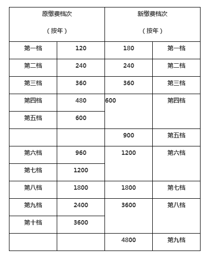 城乡居民基本养老保险参保人可在2020年6月24日前,向各辖区办税服务大厅(全城通办)申请个人缴费档次的修改,参保人逾期没有申请修改的,将按过渡后的缴费档次缴纳城乡居民养老保险费,缴费档次的过渡标准如下: